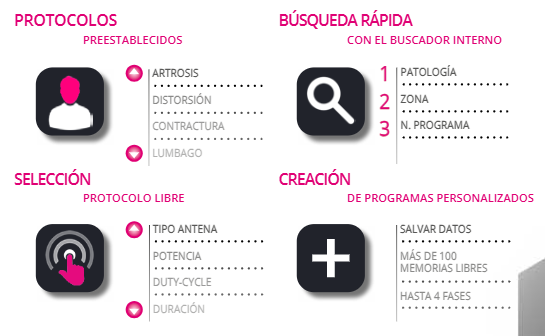 L'appareil intègre un générateur magnétron puissant et autoprotégé à régulation automatique , capable de fonctionner en continu et en mode pulsé, permettant ainsi des traitements thermiques et non thermiques. Grâce à sa puissance de crête élevée (1 600 W), Fisiowave garantit une pénétration efficace et des résultats cliniques rapides .