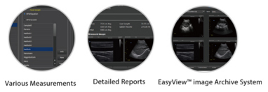 Grâce au système EasyViewTM, les données des patients, les rapports de mesure et les images stockées sont plus faciles à gérer ; et en utilisant les ports USB, nous pouvons non seulement exporter rapidement les données enregistrées , mais nous pouvons également connecter une imprimante PC qui offre une bonne alternative aux imprimantes vidéo plus chères.