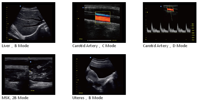- Applications multiples : Abdomen, OB & GYN, Urologie, Vasculaire, Petits organes, Pédiatrie, Cardiologie.