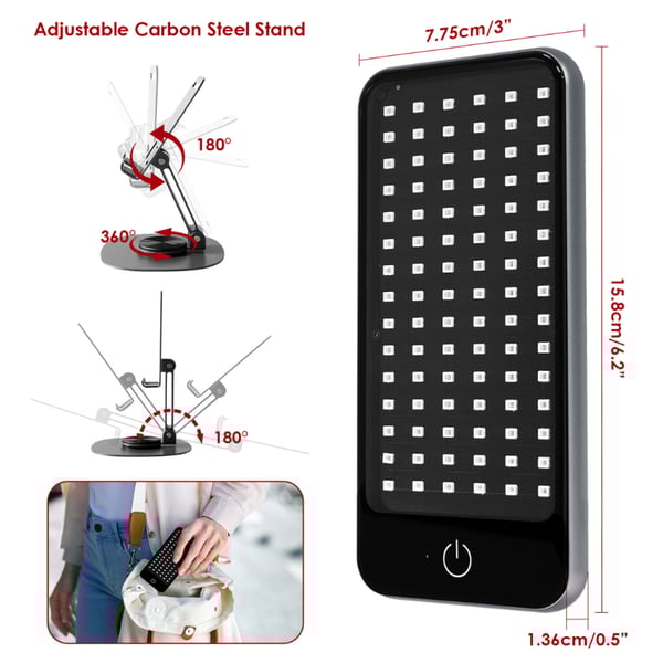 - Il émet de la lumière rouge (660 nm) et de la lumière proche infrarouge (850 nm) , des fréquences courantes en photobiomodulation.