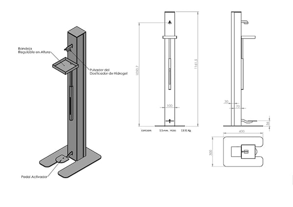 Armoire de distribution COVID-19: fonctionnement réglable en hauteur et automatique avec le pied + gel hydroalcoolique gratuit (500 ml)