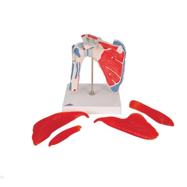 En plus de la représentation de la musculature de la coiffe des rotateurs, les surfaces d'origine et d'insertion des muscles de l'épaule sont mises en évidence dans différentes couleurs (origine = rouge ; insertion = bleu). Les muscles suivants sont représentés et peuvent être détachés : subscapularis, supraspinatus, infraspinatus, teres minor.