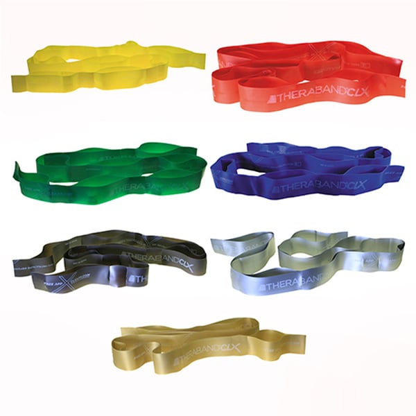 CLX de Theraband est un produit élastique révolutionnaire sans latex, qui a une série de boucles et 22 mètres de longueur
