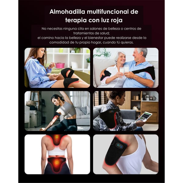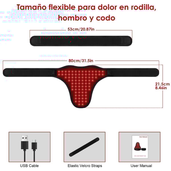 - Coussinet flexible avec lumière LED rouge (660 nm) et proche infrarouge (850 nm) pour une thérapie corporelle localisée.