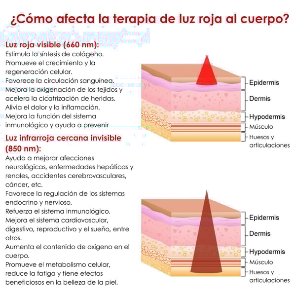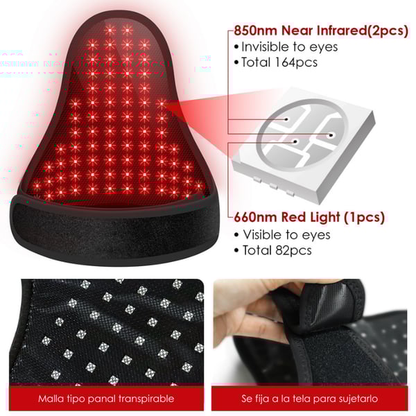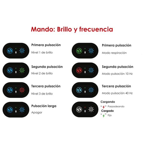 - Commande par bouton, avec modes de pulsation et options de luminosité (y compris 10 Hz et 40 Hz sur les modèles améliorés) pour adapter la thérapie à votre confort.
