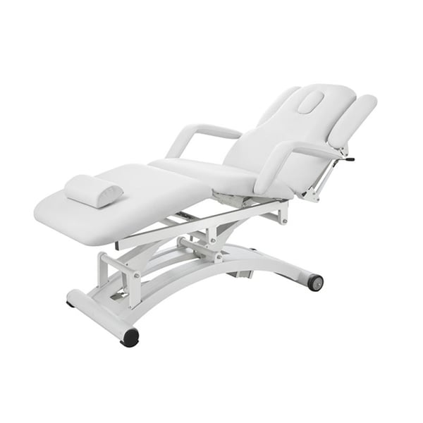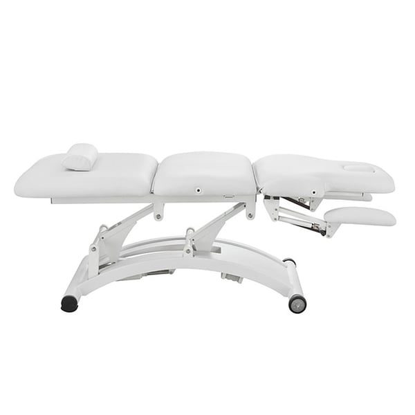 Le brancard Sphen dispose de trois moteurs qui offrent des performances élevées et sont chargés de régler la hauteur, l'inclinaison du dossier et du module central avec une extrême précision. Les patients bénéficieront également d' un confort extrême lors des traitements puisque le brancard est doté d'un double système d'accoudoirs et d'un trou facial.