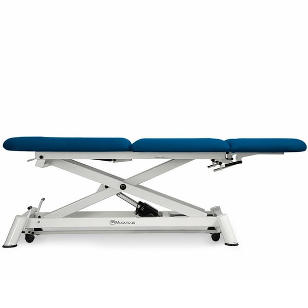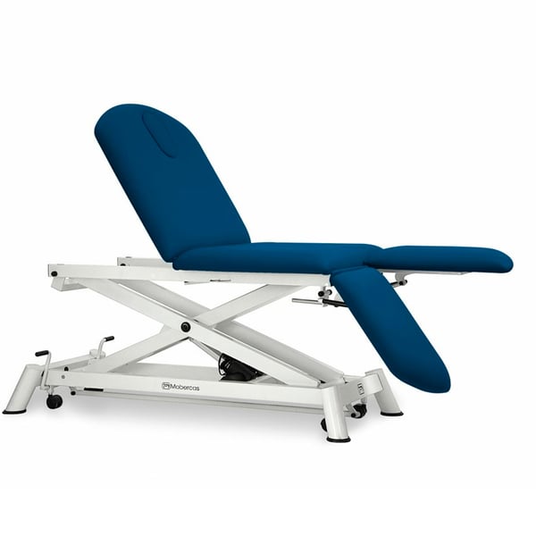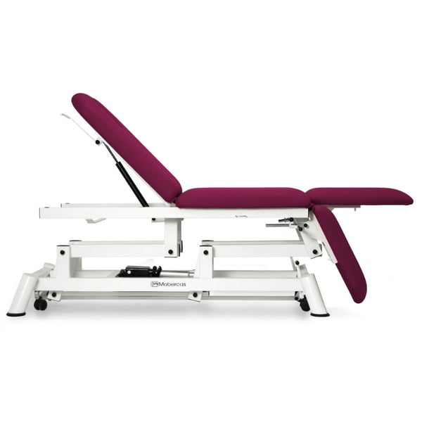 Brancard électrique à trois sections, type chaise, avec réglage en hauteur, montée droite sans mouvement latéral, repose-jambes relevables/inclinables indépendants, capuchon facial et roues escamotables . Disponible avec l'option accoudoir . C'est une table spécialement conçue spécialement pour les traitements de physiothérapie et de rééducation .