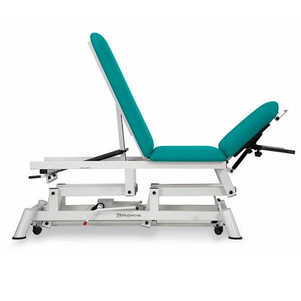 Brancard hydraulique pour ostéopathie : cinq corps, avec dossier inclinable négatif, accoudoirs réglables et roues escamotables