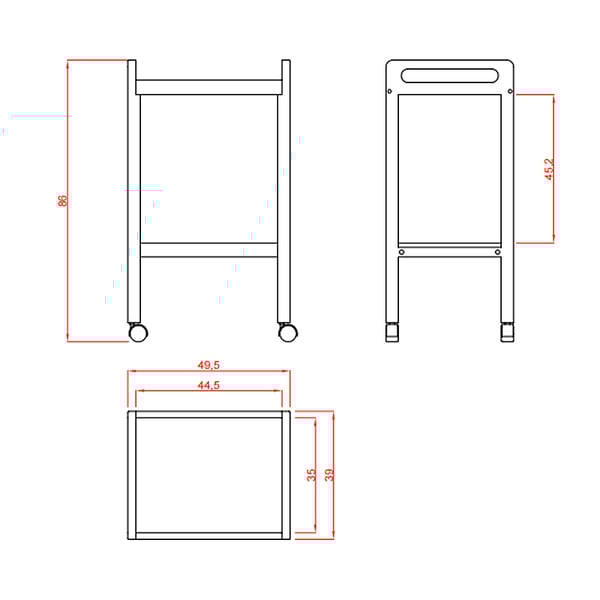 Chariot de base en résine: équipé de deux tablettes et poignées latérales