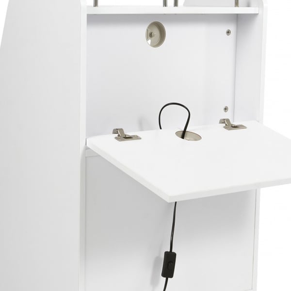 Chariot en contreplaqué blanc. Équipé de 3 tiroirs dont un équipé d'une lampe UV pour la stérilisation des instruments .