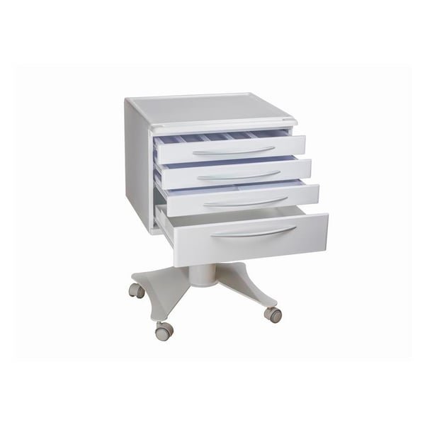 Chariot mobile, pratique et avec un coulissement doux et silencieux. Contient des roulettes et quatre tiroirs. Il est idéal pour une clinique dentaire.