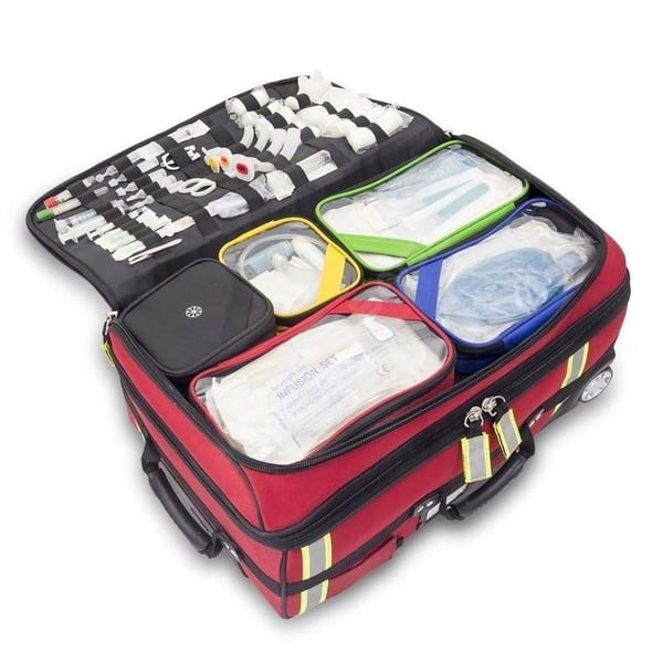 Valise d'urgence, chariot de thérapie sportive - Emerair's Trolley , avec une grande capacité qui vous permet de transporter confortablement et de manière ordonnée toutes les fournitures médicales nécessaires dans les services d'urgence .
