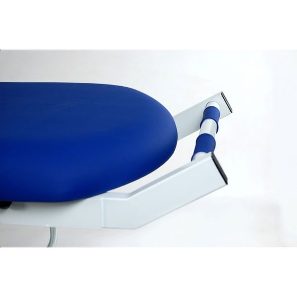 Le dossier est réglable à 70° par levier . Il est également doté de rails rabattables de chaque côté pour sécuriser la position du patient et éviter toute chute lors du transfert.