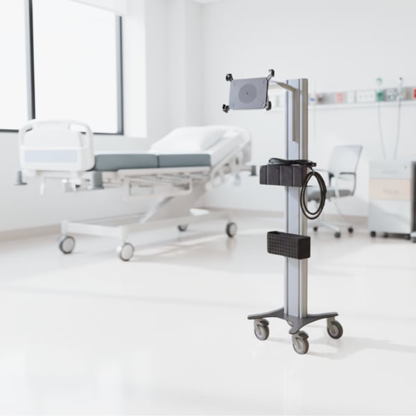 Chariot de transport portable pour échographe CHISON SonoEye CAR1P-KLS : bras semi-flexible pour tablette et porte-sonde en silicone
