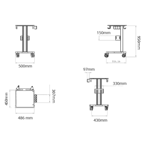Chariot de transport pour échographes Kinefis compatible avec Chison Eco, Ebit, Sonoair et Sonobook