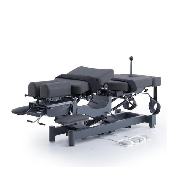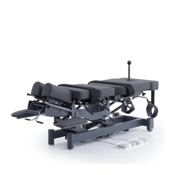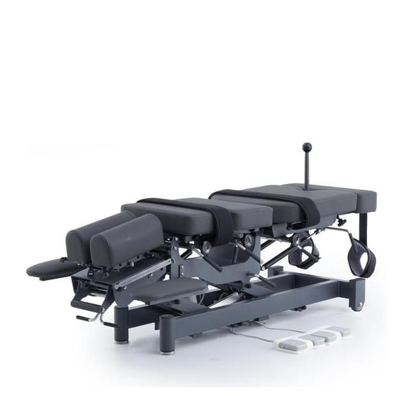La table Alma est une table de rééducation électrique conçue pour les professionnels de la physiothérapie, de la chiropratique et de la thérapie manuelle . Équipée de deux moteurs électriques permettant un réglage en hauteur Hi-Lo et l'activation de la fonction de distraction (traction lombaire) , elle favorise la précision des traitements spécialisés. Sa conception en trois sections avec séparation abdominale et quatre sections (cervicale, thoracique, lombaire et pelvienne) améliore l'adaptation anatomique au patient et permet des techniques avancées comme la flexion-distraction.