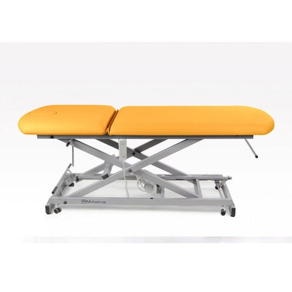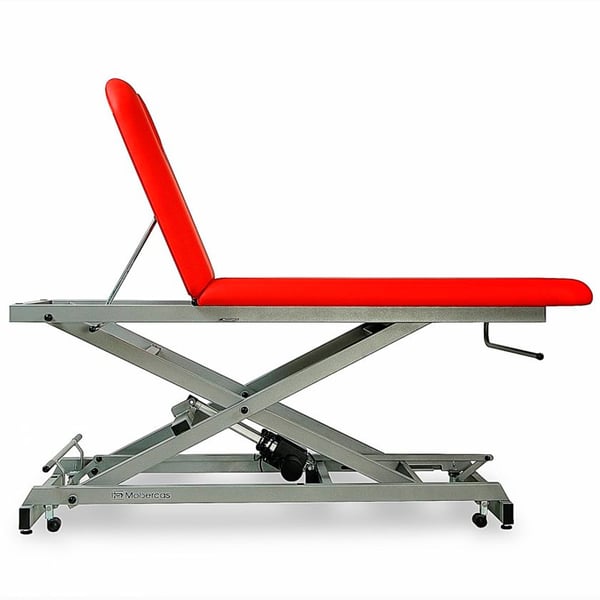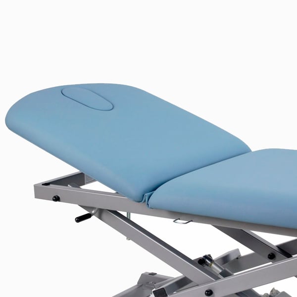 Civière d'examen électrique : deux corps, à montée droite sans mouvement latéral, avec porte-rouleau et capuchon facial (deux modèles disponibles)