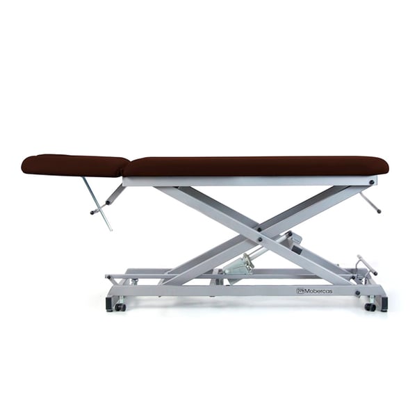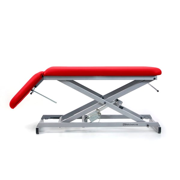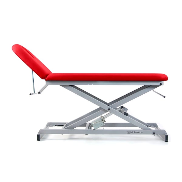 Civière d'examen électrique : deux corps, avec dossier à inclinaison négative et montée droite sans mouvement latéral, avec porte-rouleau et capuchon facial (deux modèles disponibles)