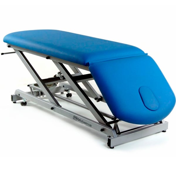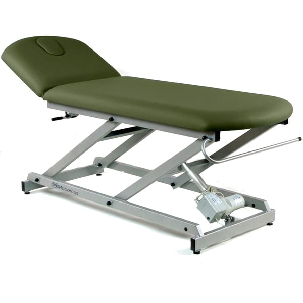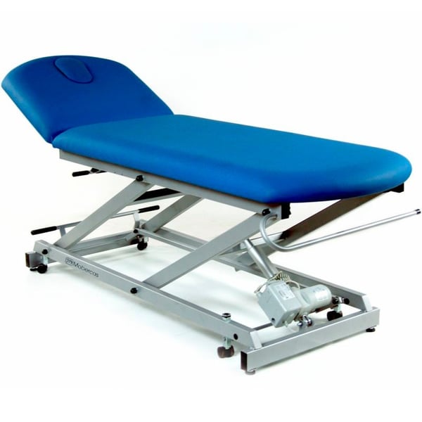 Civière d'examen électrique : deux corps avec dossier inclinable négatif, porte-papier toilette et capuchon facial (deux modèles disponibles)