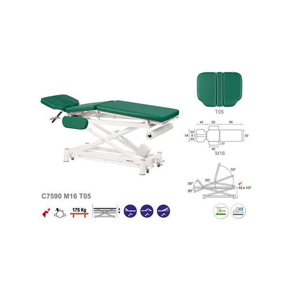 Nouvelle civière électrique Ecoposturale multifonctionnelle et polyvalente, à trois corps, parfaite pour tout type de traitement. Il se compose d'un système de levage électrique et d'une structure à ciseaux blanche en acier et de roues rétractables qui facilitent son mouvement latéral. De même, il dispose d'une tête oscillante pour un plus grand confort. Il dispose également d'un rembourrage en mousse de différentes épaisseurs et d'un revêtement de classe M2.
