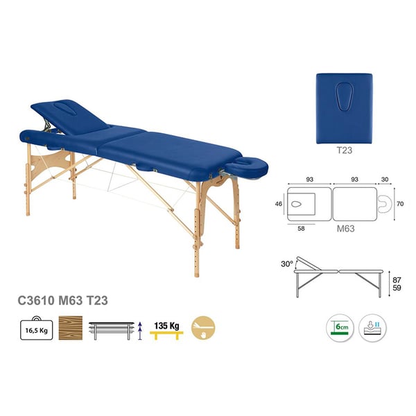 Nouvelle civière pliante Ecoposturale à deux corps polyvalente, idéale pour tous les types de spécialités. Il se compose d'une tête de lit réglable et d'une structure en bois naturel.