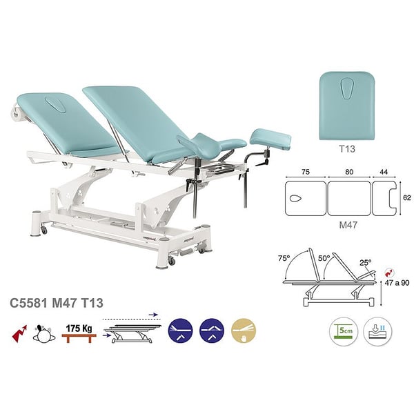 Civière électrique spécialisée en gynécologie et examen avec deux colonnes, trois corps et tours de cuisse inclus. Il présente un design simple, moderne et fonctionnel. Un autre des grands avantages qu'offre la table est sa polyvalence puisqu'elle est idéale pour de nombreux domaines : physiothérapie, ostéopathie, médecine générale, esthétique, tatouages. Une solution parfaite pour tout professionnel de la santé et de l’esthétique.