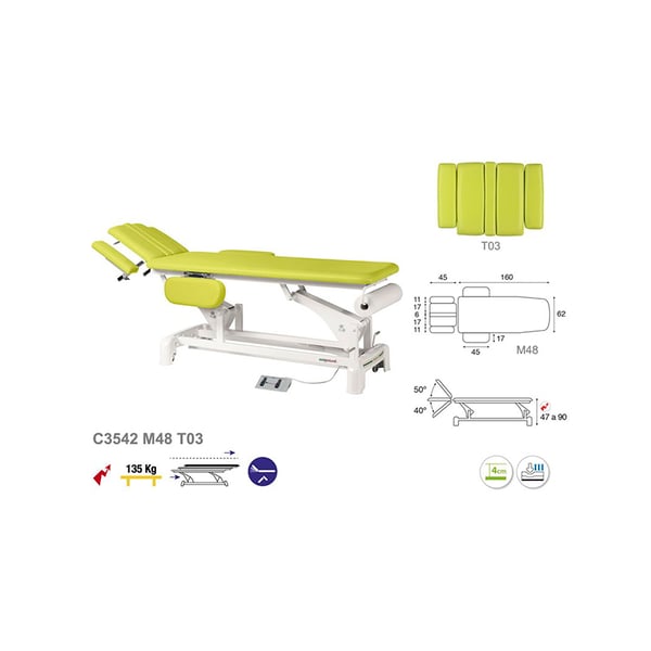 Civière électrique innovante avec modalité technique Ecoposturale, composée de deux corps et dotée d'un système de levage électrique . Il se compose d'une structure en acier de bielles avec roulements et roues rétractables qui facilitent le mouvement latéral. Il est doté d'un rembourrage en mousse de différents niveaux d'épaisseur et d'un revêtement de classe M2. De plus, il dispose d'une tête inclinable, d' un capuchon facial et de bras en éventail qui offrent un plus grand confort tant au professionnel qu'au patient.