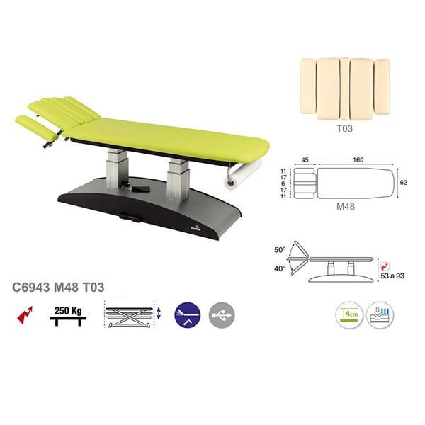 Civière électrique à deux colonnes, deux corps et élévation verticale avec tête inclinable jusqu'à 90º avec porte-rouleau inclus. Il présente un design simple, moderne et fonctionnel. Un autre des grands avantages qu'offre la table est sa polyvalence puisqu'elle est idéale pour de nombreux domaines : physiothérapie, ostéopathie, médecine générale, esthétique, tatouages. Une solution parfaite pour tout professionnel de la santé et de l’esthétique.