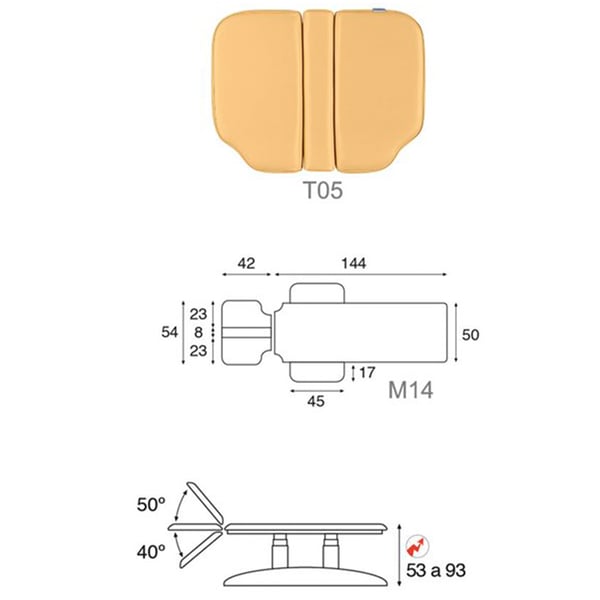 Civière électrique écoposturale : élévation verticale, deux corps, bras repliables et inclinaison de la tête jusqu'à 40º en négatif (50x188 cm)