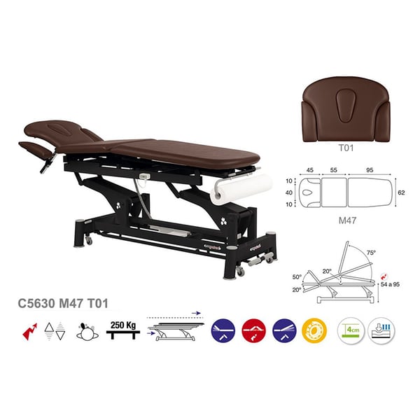 Civière électrique écoposturale multifonctionnelle : trois corps avec structure à bielle noire et appui-tête T01 (62 x 200 cm)