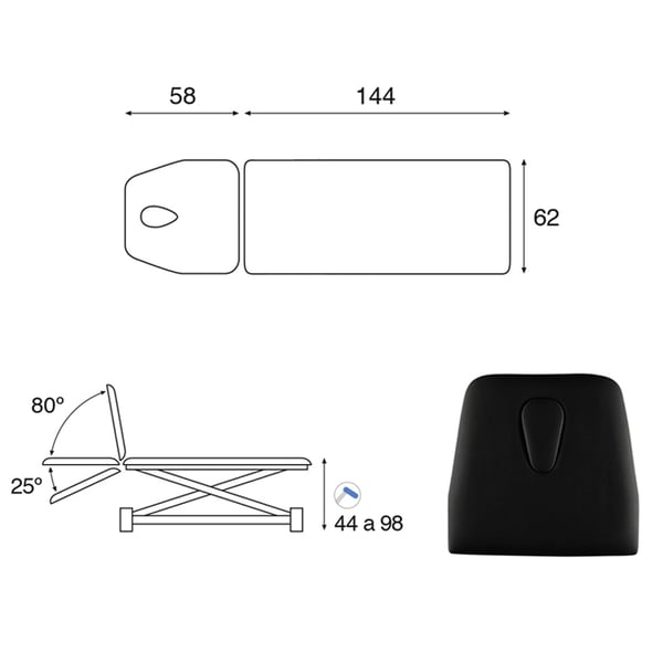 Civière hydraulique écoposturale : deux corps, avec structure en ciseaux blanche et trou pour le visage (62x207cm)