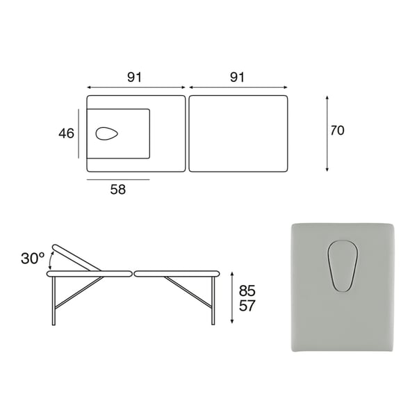 Civière pliante écoposturale professionnelle innovante à deux corps, idéale pour tout type de traitement. Il se compose d'une tête de lit réglable et d'une structure en bois naturel. Il possède également une tête oscillante et un capuchon facial pour un plus grand confort. Il dispose également d'un rembourrage en mousse de différentes épaisseurs et d'un revêtement de classe M2.