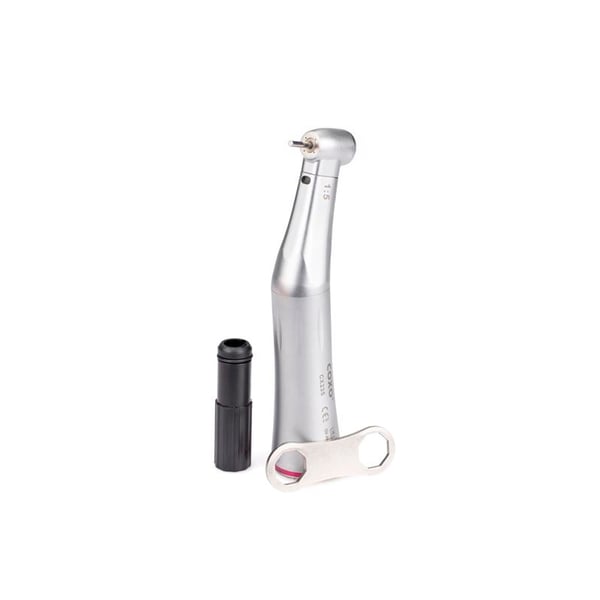 Le contre-angle multiplicateur Technoflux 1: 5 avec lumière et fibre optique est un instrument rotatif avec spray interne indiqué pour faciliter la vision de la zone de traitement. Il est confortable, pratique et, en même temps, efficace grâce à son design ergonomique. Il est facile à nettoyer, tout en étant autoclavable. Il permet le changement de fraises, qui se fait en appuyant sur un bouton. De plus, il offre une vitesse optimale jusqu'à 220 000 tr/min.
