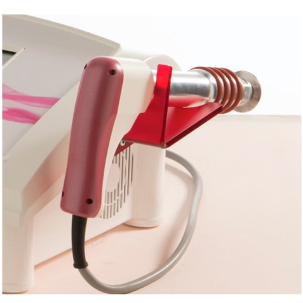 L'onde acoustique est générée à travers la pièce à main sous la forme d'une arme à feu, dont le baril est fermé à la fin par une capsule métallique contre laquelle est fondu au moyen d'air comprimé, projectile en acier, générant ainsi une onde acoustique se propageant à partir du point de contact avec la peau pour les couches plus en profondeur.