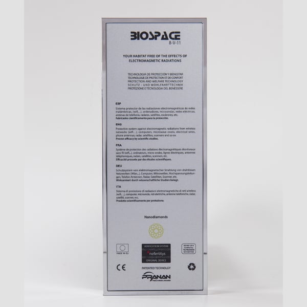 Dispositif de protection contre les rayonnements électromagnétiques BIOSPACE 8V11 Diamond. Doté de la technologie Pranan validée scientifiquement. Zone de protection jusqu'à 530 m². Idéal pour la maison et le bureau.
