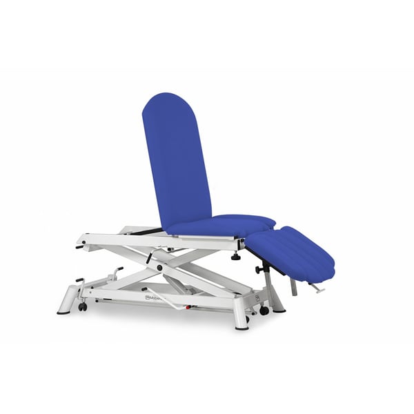 Divan hydraulique multifonctionnel pour l'ostéopathie : neuf corps, avec dossier inclinable négatif, accoudoirs, position Trendelenburg et roues escamotables
