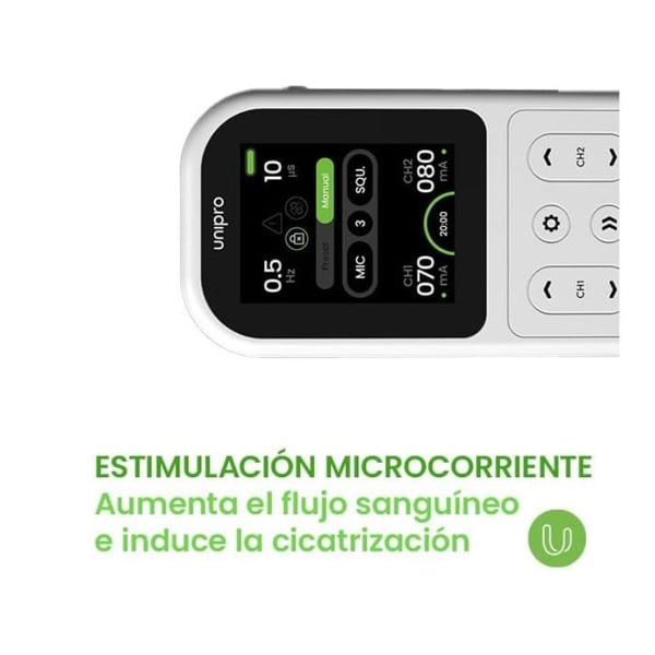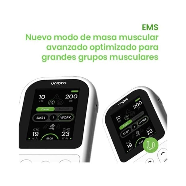 Électrostimulateur Unipro : TENS, EMS, Interférentiel et Microcourants. Électrothérapie pour le soulagement de la douleur et la rééducation musculaire