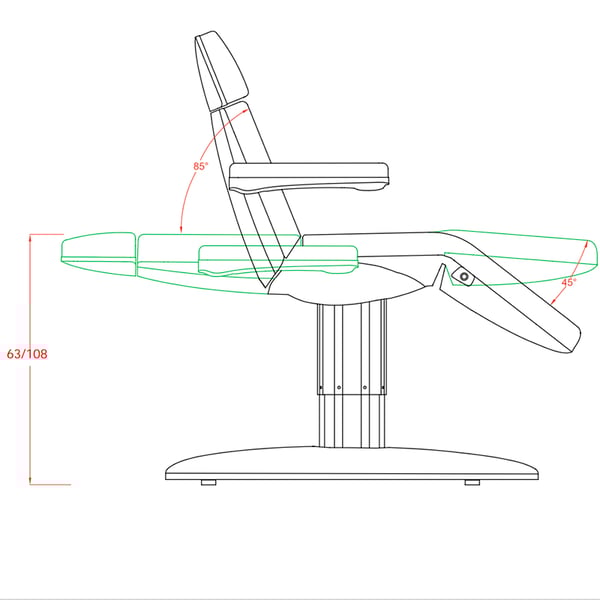 Fauteuil brancard Vome beauty : Électrique avec trois moteurs pour régler la hauteur et l'inclinaison du dossier, grand confort et accoudoirs rabattables