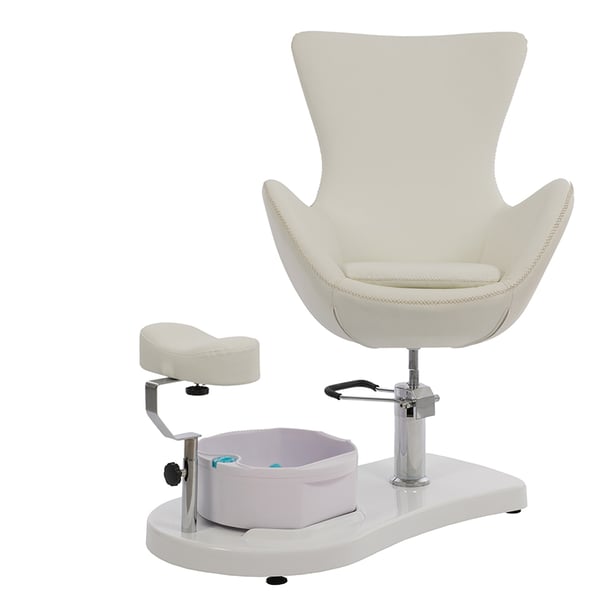 Fauteuil de pédicure avec baignoire et repose-pieds à hauteur et longueur réglables. Hauteur et rotation du fauteuil réglable avec pompe hydraulique et système de verrouillage. Blanc tapissé en PU et facile à nettoyer.