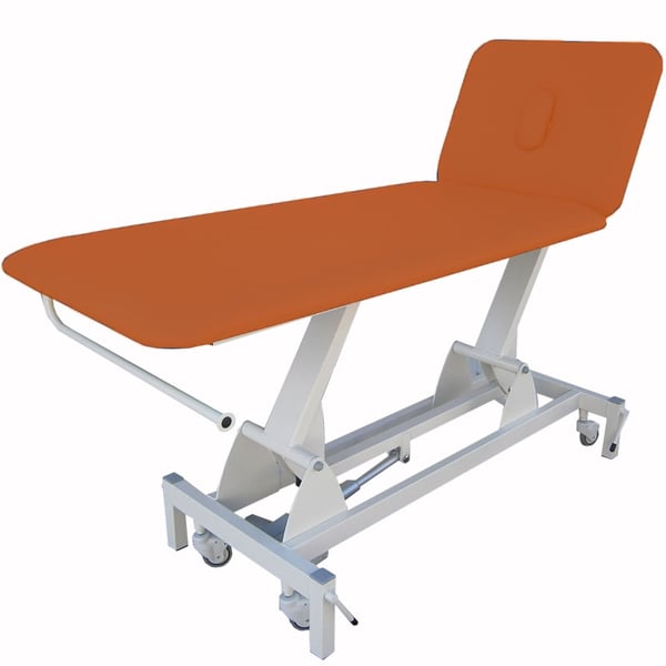 -Dossier par vérin hydropneumatique avec levier sur le côté droit du dossier, qui permet au professionnel de s'adapter facilement à la thérapie à effectuer.
