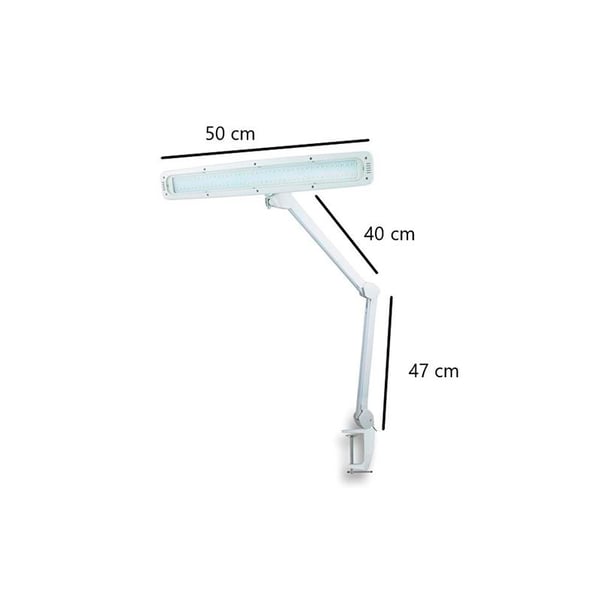 Lampe professionnelle avec 84 LED Daylight qui garantissent une lumière agréable à l'œil , constante , sans scintillement , générant une consommation minimale . Il dispose d'une pince pour la fixation et d'un interrupteur à membrane pour régler l'intensité de la lumière . Son large écran de 580 x 85 mm éclaire uniformément la surface de visualisation sans éblouissement ni ombre, vous permettant d'apprécier les nuances et les couleurs sans interférence. Son bras articulé et robuste est de grande qualité et longueur (40 + 40 cm étendu) et permet de placer la lumière dans la position la plus appropriée.