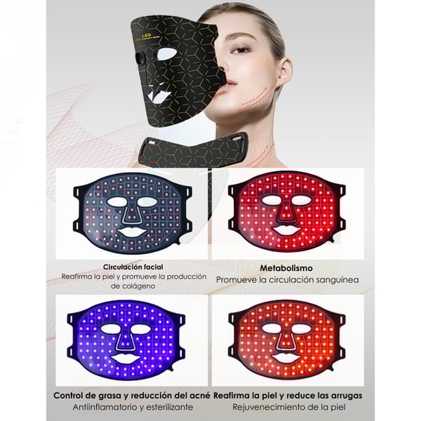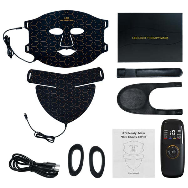 Masque de photobiomodulation pour le visage et le cou : luminothérapie LED rouge et infrarouge pour le rajeunissement