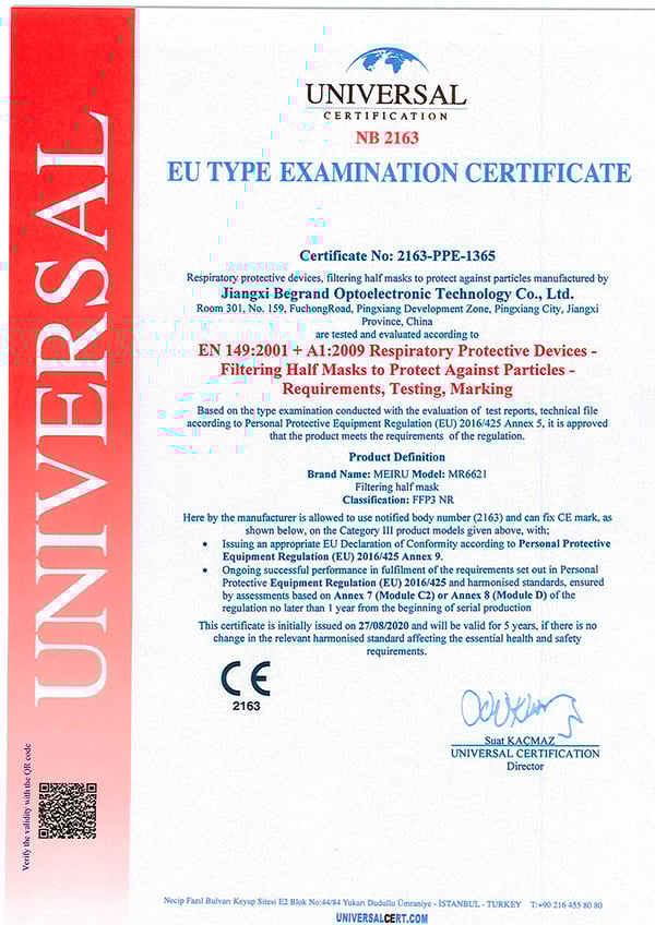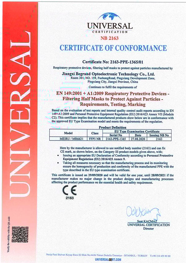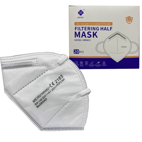 • Masques FFP3 avec certificat CE européen (emballés individuellement - boîte de 20 unités)