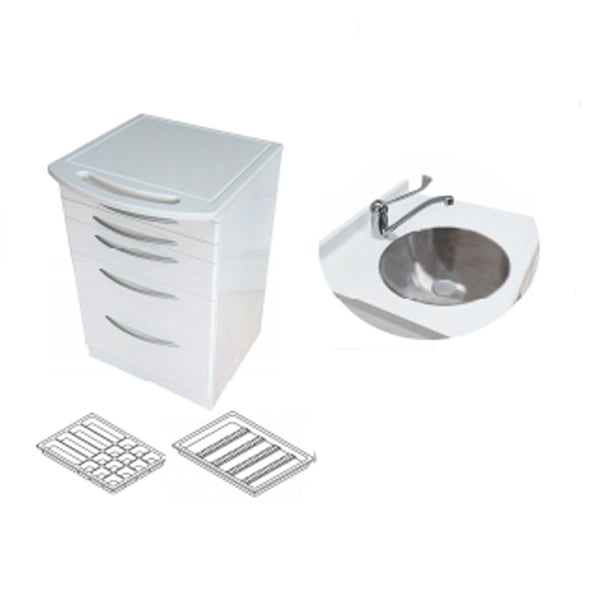 Meuble métallique pour cabinet dentaire avec lavage intégré à gauche