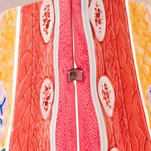 Modèle anatomique du sein féminin conçu pour illustrer la structure interne du tissu mammaire, sain et pathologique. Idéal pour l'enseignement médical, la formation continue et la sensibilisation aux pathologies mammaires, il permet de visualiser les différentes couches tissulaires et de comprendre les anomalies mammaires les plus fréquentes.