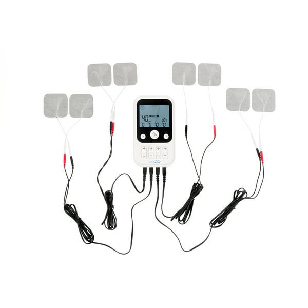 Le nouveau Pocket Fit 4 est un électrostimulateur à quatre canaux avec une alimentation par batterie rechargeable (incluse dans l'emballage).