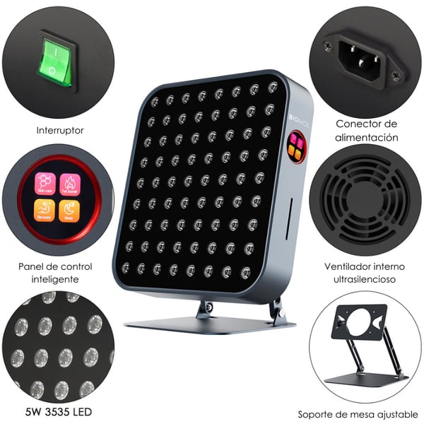 Le HP-360 est un panneau de luminothérapie LED haute puissance conçu pour une utilisation à domicile dans le cadre de soins de bien-être, de soins de la peau et d'applications de santé générale. Il offre un éclairage multispectral avec différentes longueurs d'onde et des commandes avancées pour des séances personnalisées , permettant des traitements du demi-corps ou du corps entier selon les besoins de l'utilisateur.