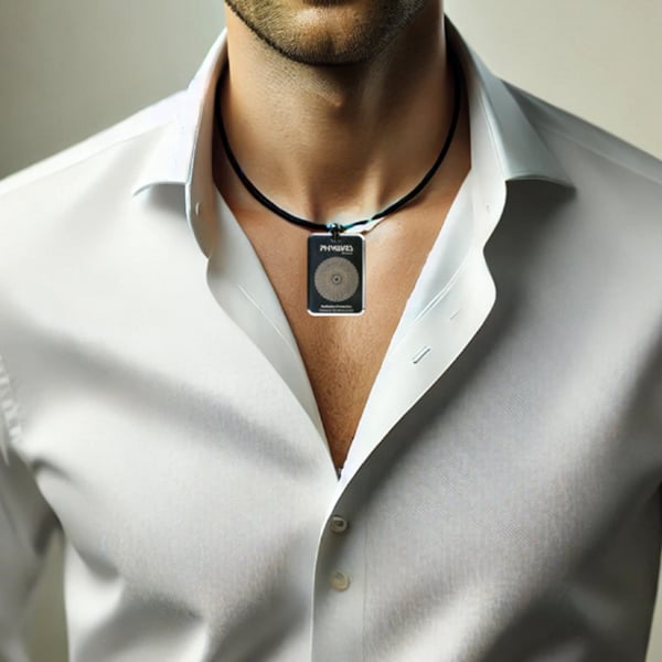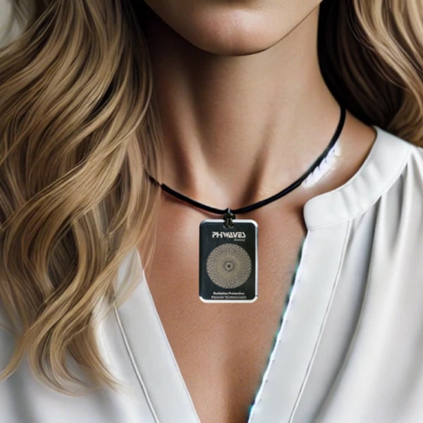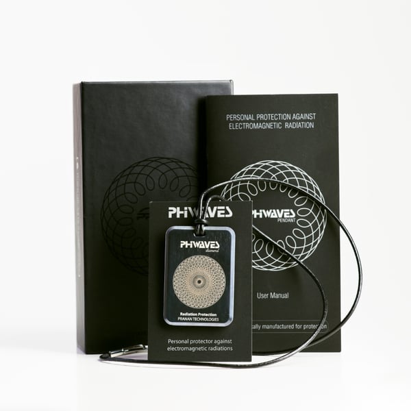 Pendentif PHIWAVES 5G : dispositif de protection contre les rayonnements électromagnétiques doté de la technologie nanodiamant Pranan. Pendentif à porter pour la protection personnelle.