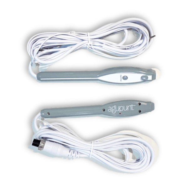 - L'APS e4 dispose d'un pointeur capable d'émettre du courant de manière superficielle à l'aide d'une entretoise et de 4 canaux avec pinces crocodiles pour pouvoir émettre des courants de manière percutanée avec une aiguille .
