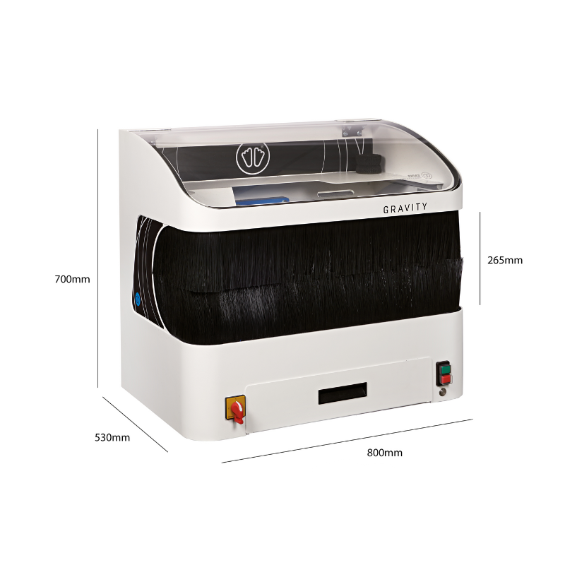 La polisseuse Gravity G3 avec armoire offre un environnement de travail sûr, silencieux et hautement fonctionnel pour les travaux de polissage professionnels. Son armoire étanche avec vitre panoramique en plexiglas antistatique assure une visibilité optimale , tandis que l'éclairage LED intégré améliore la précision de chaque opération. Dotée de deux zones de polissage , d'un compartiment de rangement spacieux, d'une étagère pour accessoires et d'un système d'aspiration des poussières performant , elle garantit performance, confort et propreté. Avec un moteur de 600 W, une vitesse de 2 850 tr/min et une hauteur réglable, c'est un outil robuste et ergonomique , conçu pour les ateliers et les cliniques recherchant efficacité, durabilité et une expérience de travail optimale.